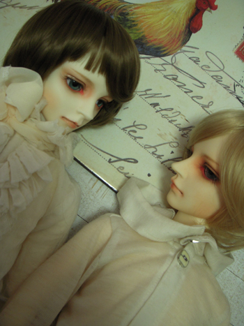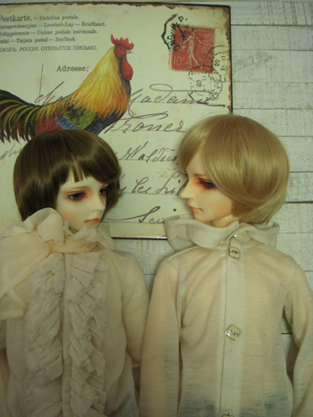 シャルルがパーカーの中に着ているのは少女用のワンピなんだけど、このディーラー様のお洋服がどれもすごく好みで、可愛くって、どうしてもどうしても欲しかったので、男の子でも大丈夫そうなデザインのものを選んで購入。靴下も同じディーラー様で購入。